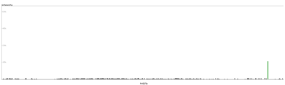 At the top of the view, the position of the antigen (identified by the corresponding HPA identifier) is shown as a green bar. A yellow triangle on the bar indicates a <100% sequence identity to the protein target.