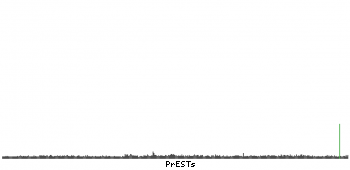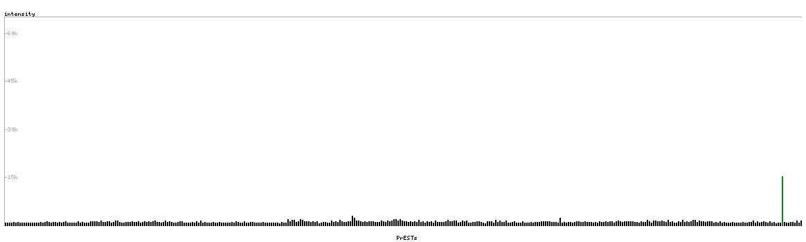 At the top of the view, the position of the antigen (identified by the corresponding HPA identifier) is shown as a green bar. A yellow triangle on the bar indicates a <100% sequence identity to the protein target.