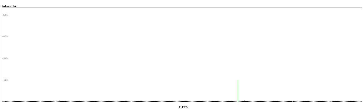 At the top of the view, the position of the antigen (identified by the corresponding HPA identifier) is shown as a green bar. A yellow triangle on the bar indicates a <100% sequence identity to the protein target.