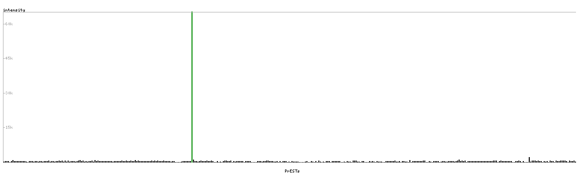 At the top of the view, the position of the antigen (identified by the corresponding HPA identifier) is shown as a green bar. A yellow triangle on the bar indicates a <100% sequence identity to the protein target.