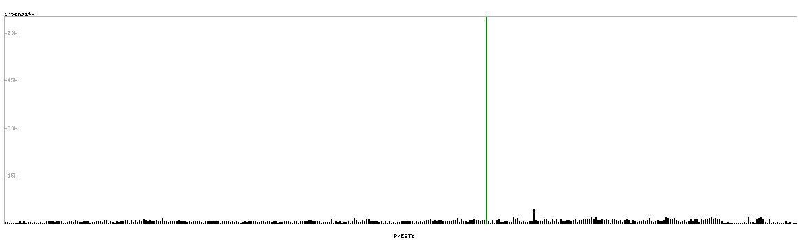 At the top of the view, the position of the antigen (identified by the corresponding HPA identifier) is shown as a green bar. A yellow triangle on the bar indicates a <100% sequence identity to the protein target.