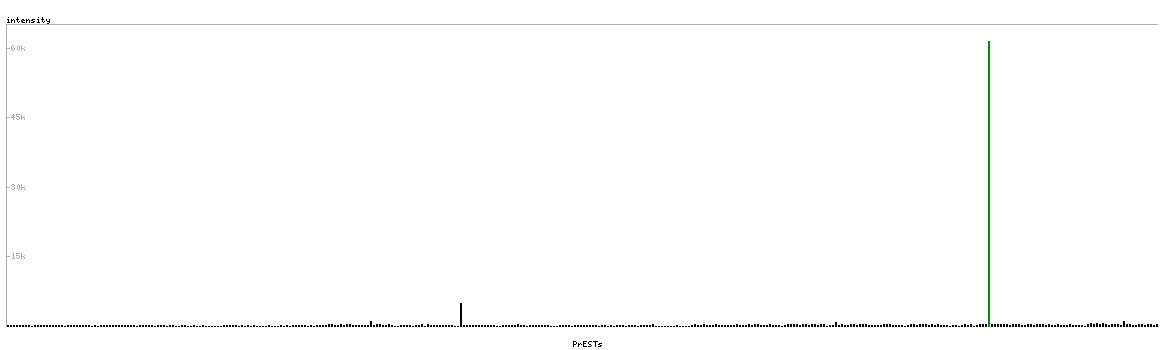 At the top of the view, the position of the antigen (identified by the corresponding HPA identifier) is shown as a green bar. A yellow triangle on the bar indicates a <100% sequence identity to the protein target.