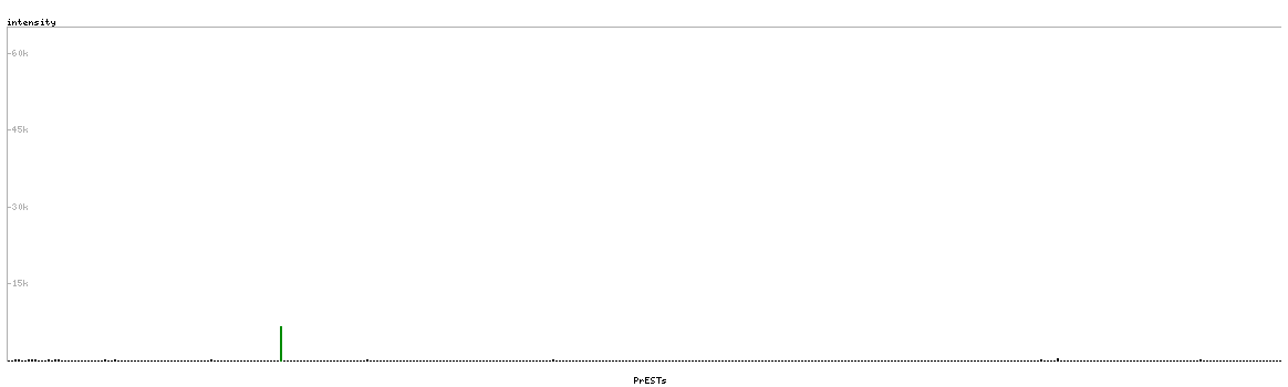 At the top of the view, the position of the antigen (identified by the corresponding HPA identifier) is shown as a green bar. A yellow triangle on the bar indicates a <100% sequence identity to the protein target.