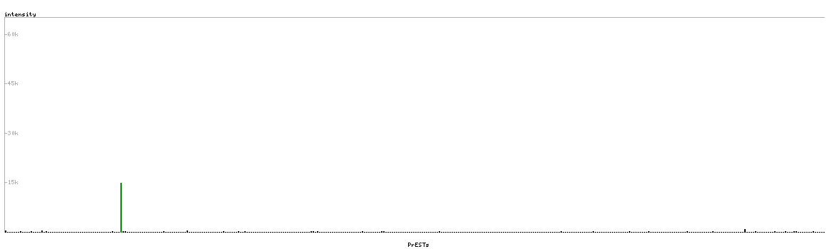 At the top of the view, the position of the antigen (identified by the corresponding HPA identifier) is shown as a green bar. A yellow triangle on the bar indicates a <100% sequence identity to the protein target.