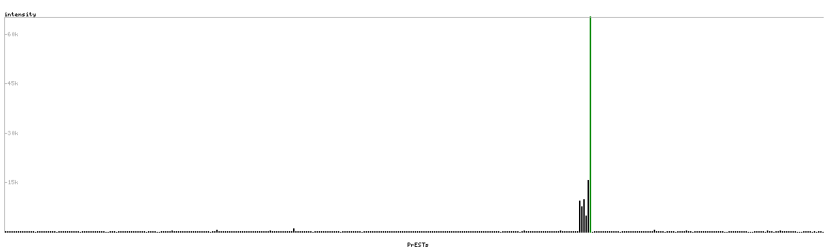 At the top of the view, the position of the antigen (identified by the corresponding HPA identifier) is shown as a green bar. A yellow triangle on the bar indicates a <100% sequence identity to the protein target.
