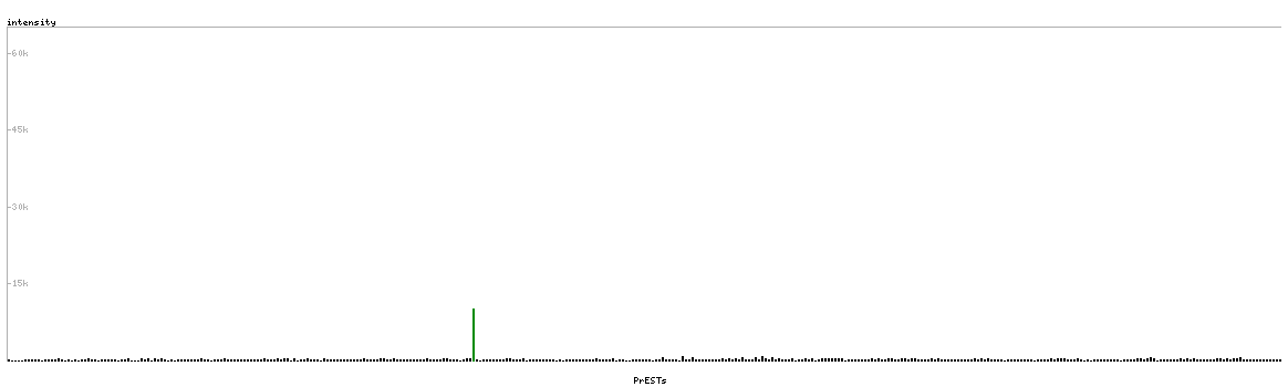 At the top of the view, the position of the antigen (identified by the corresponding HPA identifier) is shown as a green bar. A yellow triangle on the bar indicates a <100% sequence identity to the protein target.