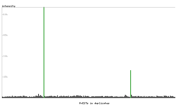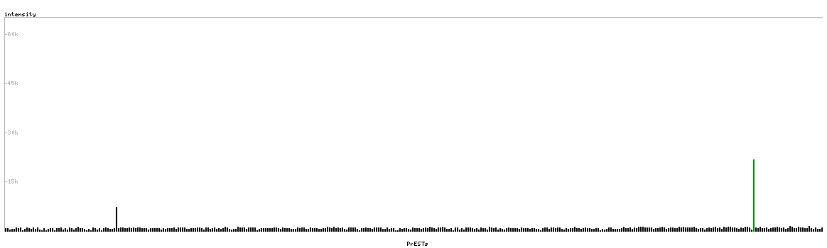 At the top of the view, the position of the antigen (identified by the corresponding HPA identifier) is shown as a green bar. A yellow triangle on the bar indicates a <100% sequence identity to the protein target.