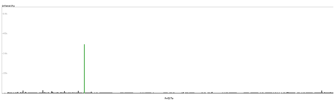 At the top of the view, the position of the antigen (identified by the corresponding HPA identifier) is shown as a green bar. A yellow triangle on the bar indicates a <100% sequence identity to the protein target.