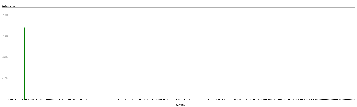 At the top of the view, the position of the antigen (identified by the corresponding HPA identifier) is shown as a green bar. A yellow triangle on the bar indicates a <100% sequence identity to the protein target.