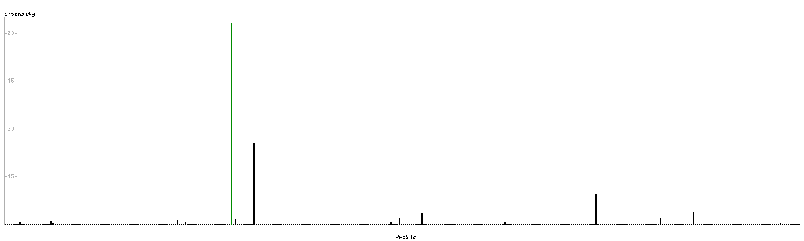 At the top of the view, the position of the antigen (identified by the corresponding HPA identifier) is shown as a green bar. A yellow triangle on the bar indicates a <100% sequence identity to the protein target.