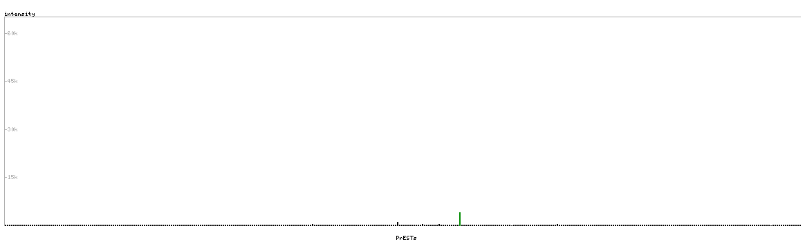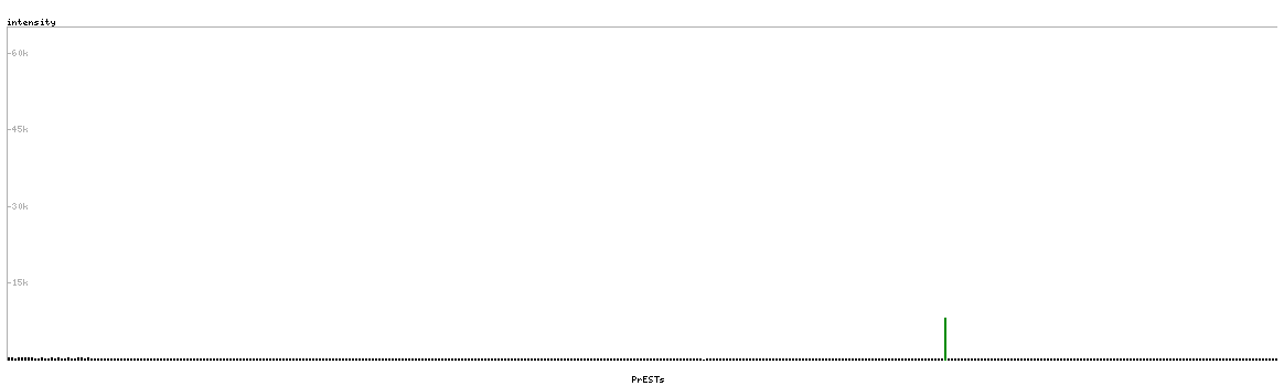 At the top of the view, the position of the antigen (identified by the corresponding HPA identifier) is shown as a green bar. A yellow triangle on the bar indicates a <100% sequence identity to the protein target.