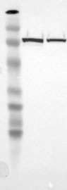 A Western blot analysis is performed on a panel of human tissues and cell lines to evaluate antibody specificity. For antibodies with unreliable result a revalidation using an over-expression lysate is performed.
