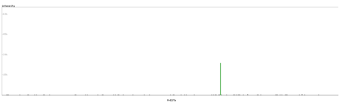 At the top of the view, the position of the antigen (identified by the corresponding HPA identifier) is shown as a green bar. A yellow triangle on the bar indicates a <100% sequence identity to the protein target.