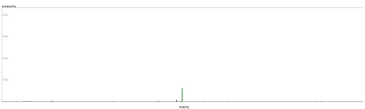At the top of the view, the position of the antigen (identified by the corresponding HPA identifier) is shown as a green bar. A yellow triangle on the bar indicates a <100% sequence identity to the protein target.