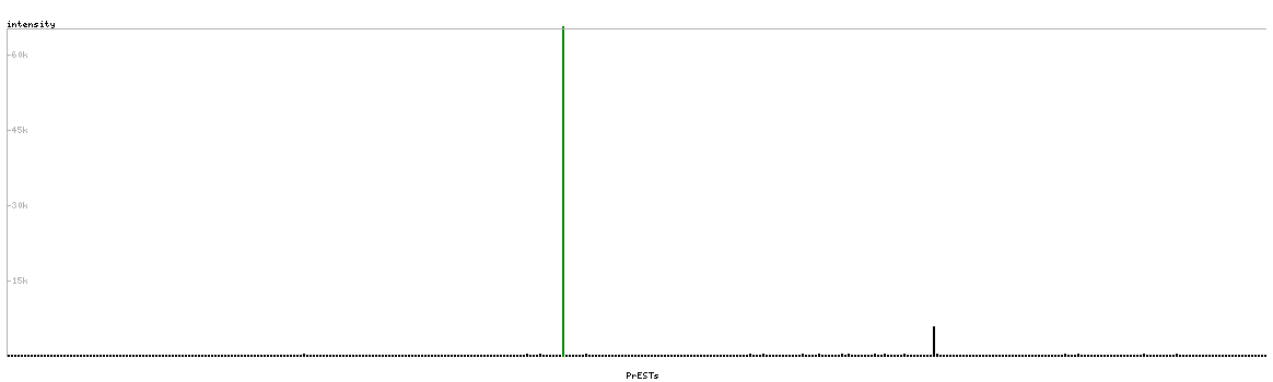 At the top of the view, the position of the antigen (identified by the corresponding HPA identifier) is shown as a green bar. A yellow triangle on the bar indicates a <100% sequence identity to the protein target.