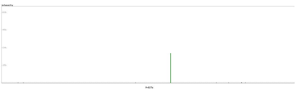 At the top of the view, the position of the antigen (identified by the corresponding HPA identifier) is shown as a green bar. A yellow triangle on the bar indicates a <100% sequence identity to the protein target.