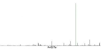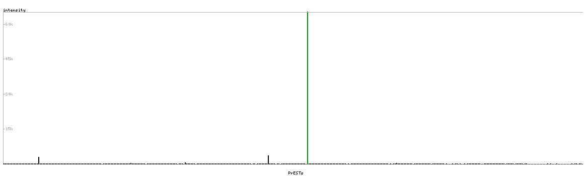 At the top of the view, the position of the antigen (identified by the corresponding HPA identifier) is shown as a green bar. A yellow triangle on the bar indicates a <100% sequence identity to the protein target.