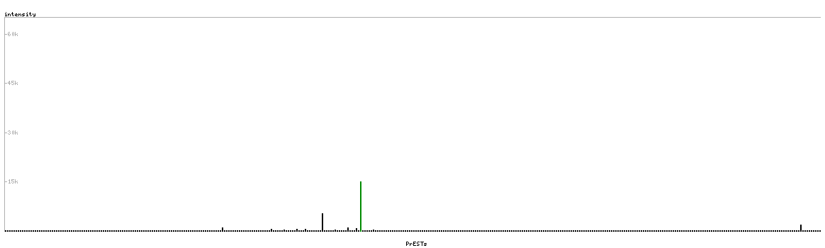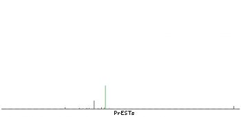 At the top of the view, the position of the antigen (identified by the corresponding HPA identifier) is shown as a green bar. A yellow triangle on the bar indicates a <100% sequence identity to the protein target.
