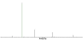 At the top of the view, the position of the antigen (identified by the corresponding HPA identifier) is shown as a green bar. A yellow triangle on the bar indicates a <100% sequence identity to the protein target.