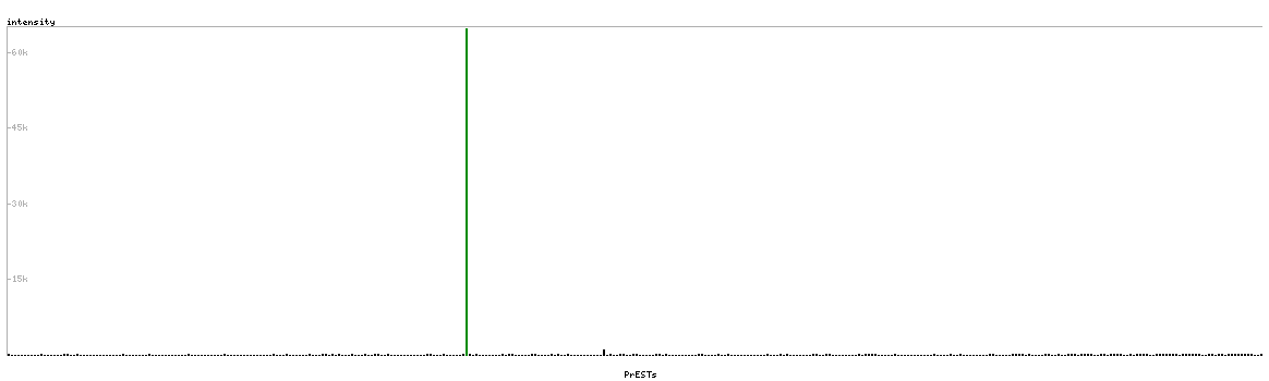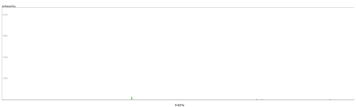 At the top of the view, the position of the antigen (identified by the corresponding HPA identifier) is shown as a green bar. A yellow triangle on the bar indicates a <100% sequence identity to the protein target.