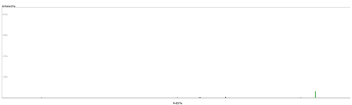At the top of the view, the position of the antigen (identified by the corresponding HPA identifier) is shown as a green bar. A yellow triangle on the bar indicates a <100% sequence identity to the protein target.