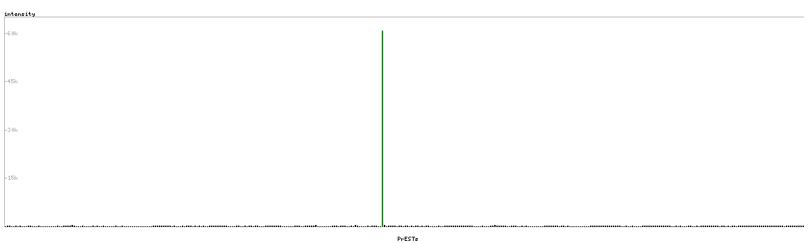 At the top of the view, the position of the antigen (identified by the corresponding HPA identifier) is shown as a green bar. A yellow triangle on the bar indicates a <100% sequence identity to the protein target.