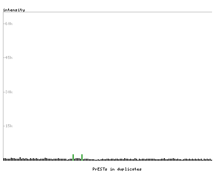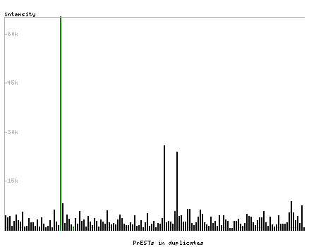 At the top of the view, the position of the antigen (identified by the corresponding HPA identifier) is shown as a green bar. A yellow triangle on the bar indicates a <100% sequence identity to the protein target.