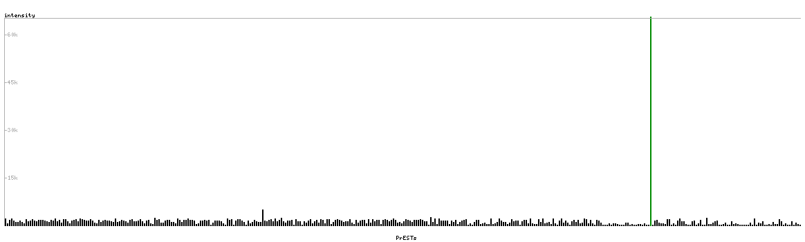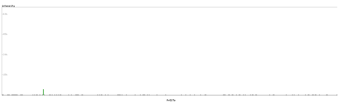 At the top of the view, the position of the antigen (identified by the corresponding HPA identifier) is shown as a green bar. A yellow triangle on the bar indicates a <100% sequence identity to the protein target.