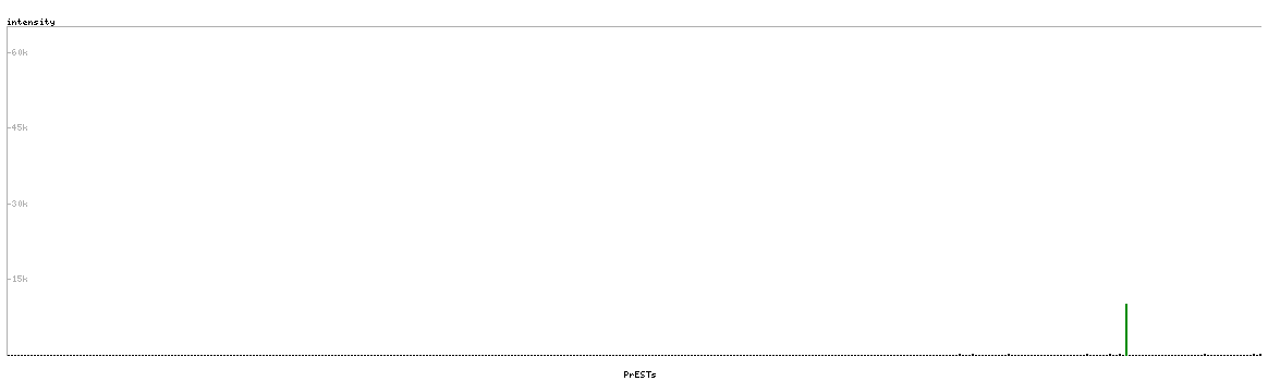 At the top of the view, the position of the antigen (identified by the corresponding HPA identifier) is shown as a green bar. A yellow triangle on the bar indicates a <100% sequence identity to the protein target.