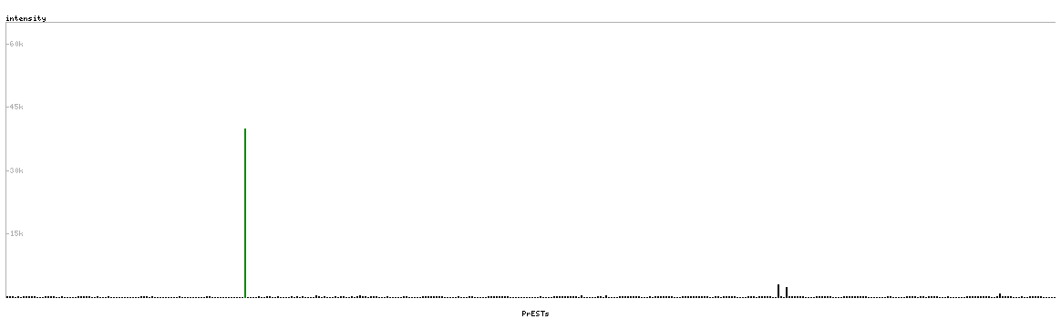 At the top of the view, the position of the antigen (identified by the corresponding HPA identifier) is shown as a green bar. A yellow triangle on the bar indicates a <100% sequence identity to the protein target.