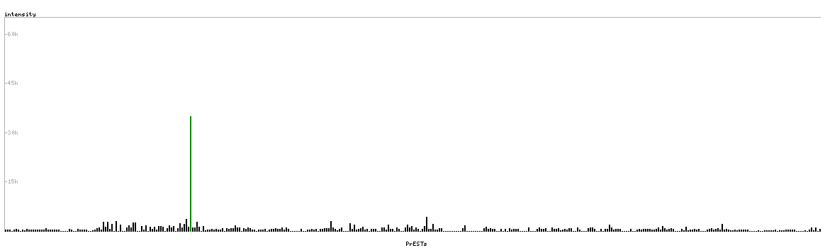 At the top of the view, the position of the antigen (identified by the corresponding HPA identifier) is shown as a green bar. A yellow triangle on the bar indicates a <100% sequence identity to the protein target.
