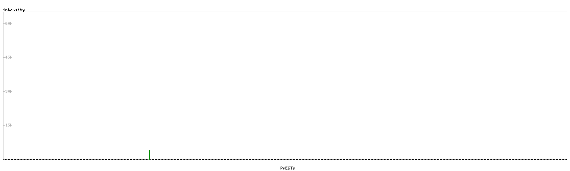 At the top of the view, the position of the antigen (identified by the corresponding HPA identifier) is shown as a green bar. A yellow triangle on the bar indicates a <100% sequence identity to the protein target.