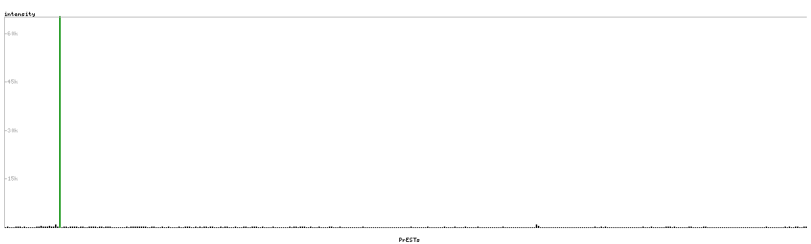 At the top of the view, the position of the antigen (identified by the corresponding HPA identifier) is shown as a green bar. A yellow triangle on the bar indicates a <100% sequence identity to the protein target.