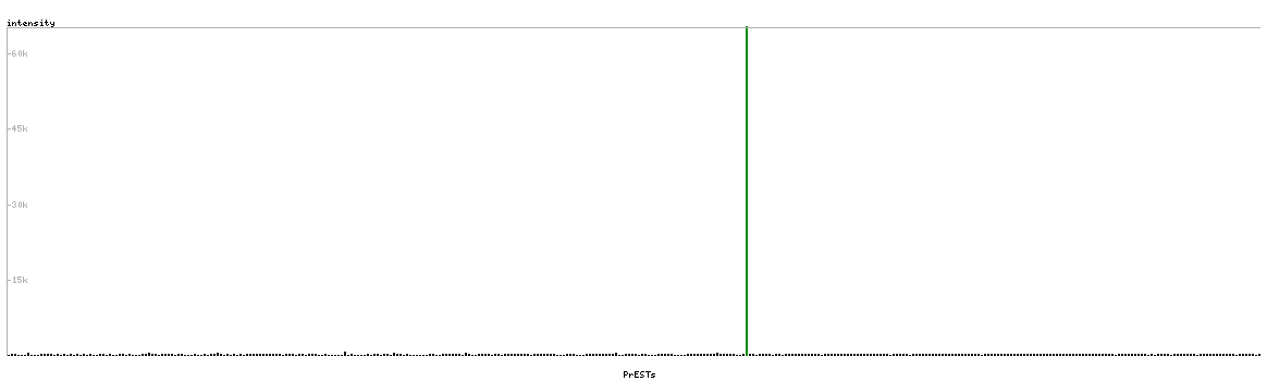 At the top of the view, the position of the antigen (identified by the corresponding HPA identifier) is shown as a green bar. A yellow triangle on the bar indicates a <100% sequence identity to the protein target.