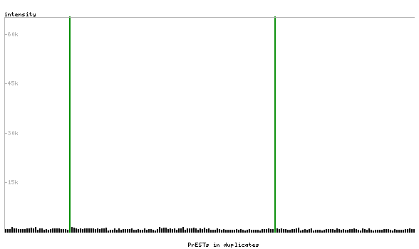 At the top of the view, the position of the antigen (identified by the corresponding HPA identifier) is shown as a green bar. A yellow triangle on the bar indicates a <100% sequence identity to the protein target.