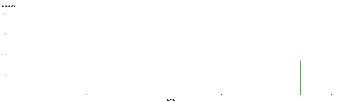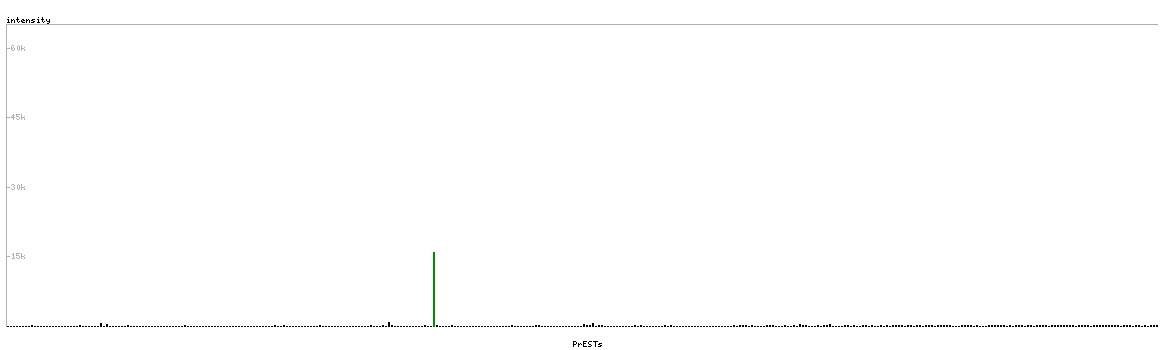 At the top of the view, the position of the antigen (identified by the corresponding HPA identifier) is shown as a green bar. A yellow triangle on the bar indicates a <100% sequence identity to the protein target.