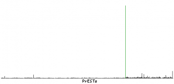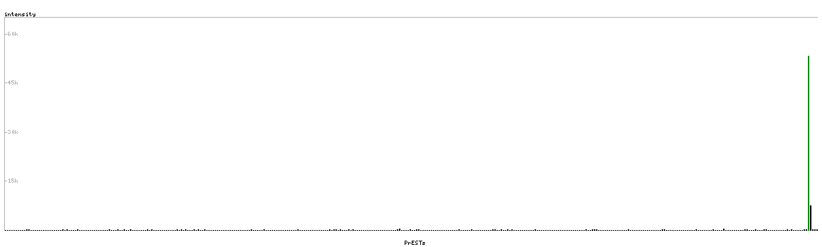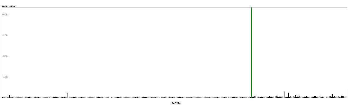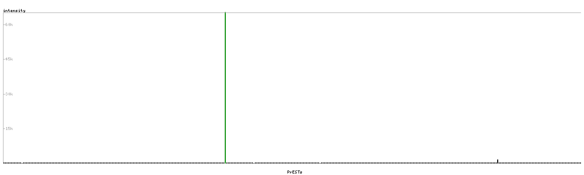At the top of the view, the position of the antigen (identified by the corresponding HPA identifier) is shown as a green bar. A yellow triangle on the bar indicates a <100% sequence identity to the protein target.