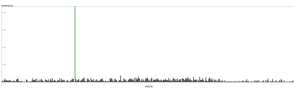 At the top of the view, the position of the antigen (identified by the corresponding HPA identifier) is shown as a green bar. A yellow triangle on the bar indicates a <100% sequence identity to the protein target.