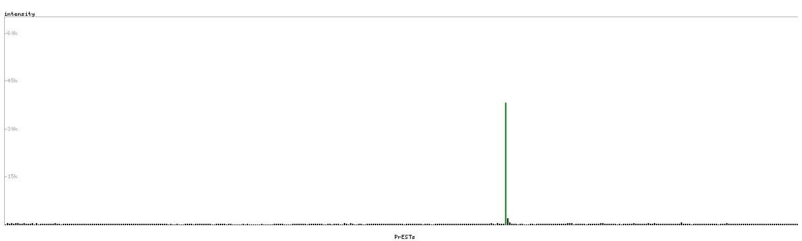 At the top of the view, the position of the antigen (identified by the corresponding HPA identifier) is shown as a green bar. A yellow triangle on the bar indicates a <100% sequence identity to the protein target.