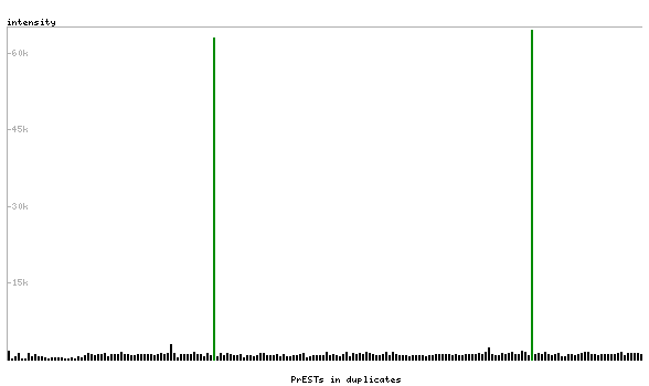 At the top of the view, the position of the antigen (identified by the corresponding HPA identifier) is shown as a green bar. A yellow triangle on the bar indicates a <100% sequence identity to the protein target.