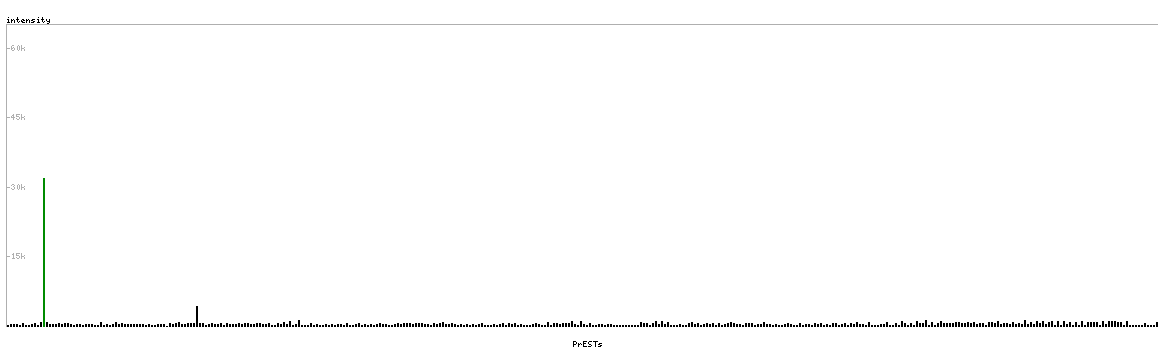 At the top of the view, the position of the antigen (identified by the corresponding HPA identifier) is shown as a green bar. A yellow triangle on the bar indicates a <100% sequence identity to the protein target.
