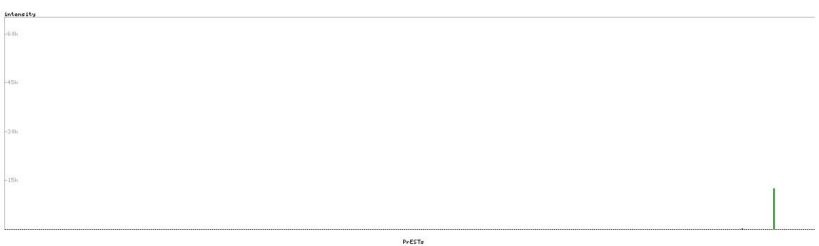 At the top of the view, the position of the antigen (identified by the corresponding HPA identifier) is shown as a green bar. A yellow triangle on the bar indicates a <100% sequence identity to the protein target.