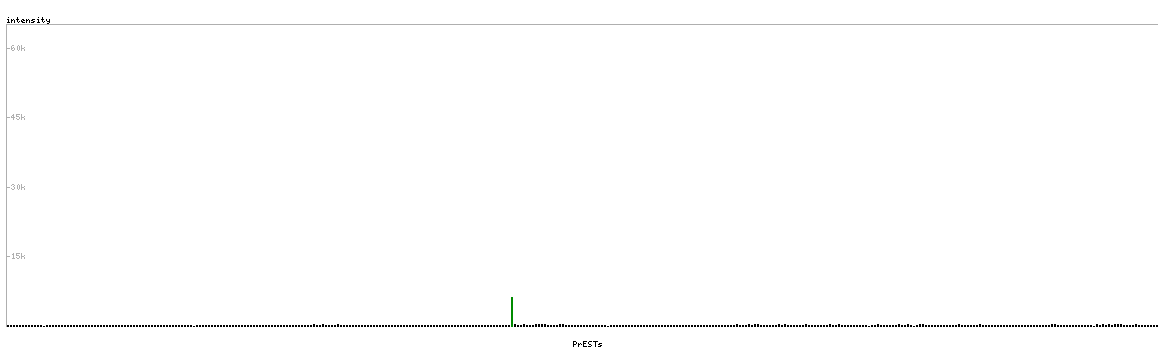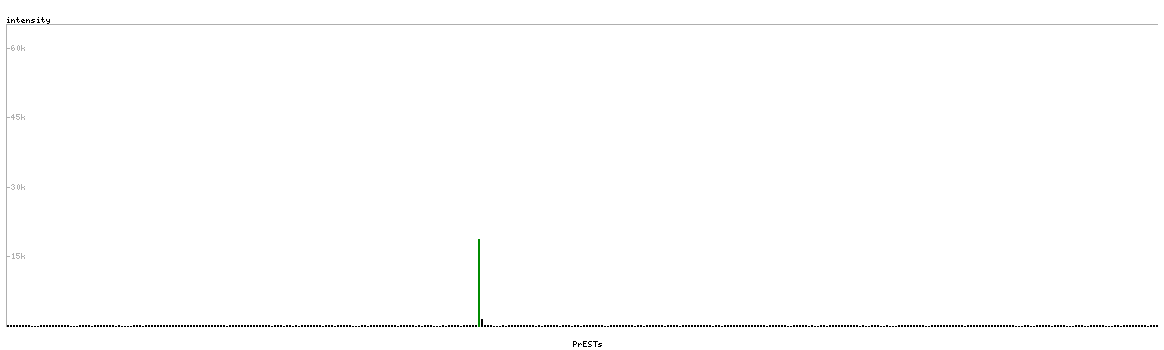 At the top of the view, the position of the antigen (identified by the corresponding HPA identifier) is shown as a green bar. A yellow triangle on the bar indicates a <100% sequence identity to the protein target.
