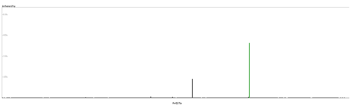 At the top of the view, the position of the antigen (identified by the corresponding HPA identifier) is shown as a green bar. A yellow triangle on the bar indicates a <100% sequence identity to the protein target.