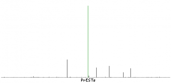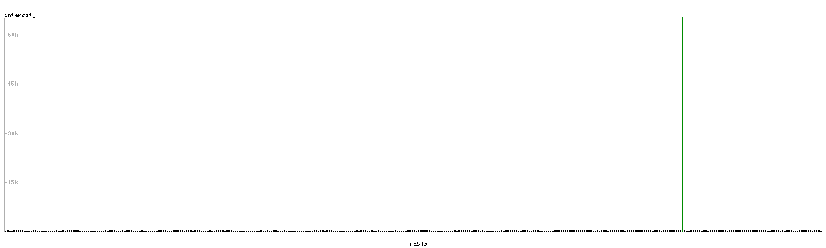 At the top of the view, the position of the antigen (identified by the corresponding HPA identifier) is shown as a green bar. A yellow triangle on the bar indicates a <100% sequence identity to the protein target.