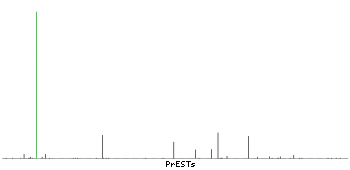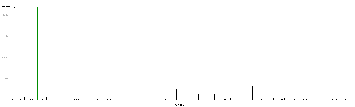 At the top of the view, the position of the antigen (identified by the corresponding HPA identifier) is shown as a green bar. A yellow triangle on the bar indicates a <100% sequence identity to the protein target.