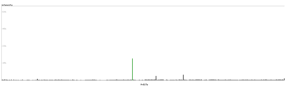 At the top of the view, the position of the antigen (identified by the corresponding HPA identifier) is shown as a green bar. A yellow triangle on the bar indicates a <100% sequence identity to the protein target.