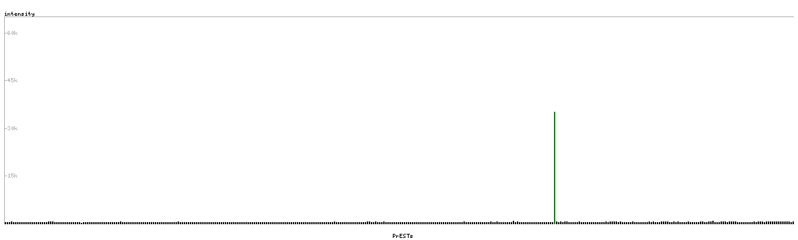 At the top of the view, the position of the antigen (identified by the corresponding HPA identifier) is shown as a green bar. A yellow triangle on the bar indicates a <100% sequence identity to the protein target.