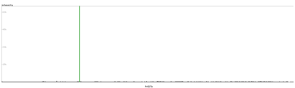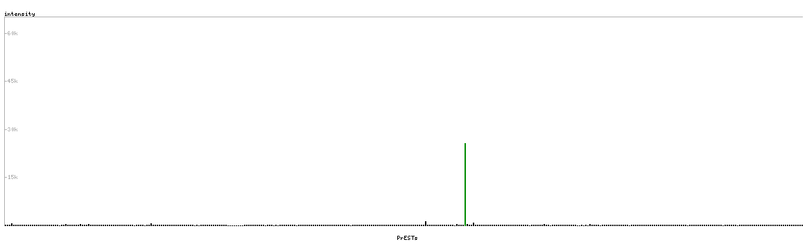 At the top of the view, the position of the antigen (identified by the corresponding HPA identifier) is shown as a green bar. A yellow triangle on the bar indicates a <100% sequence identity to the protein target.