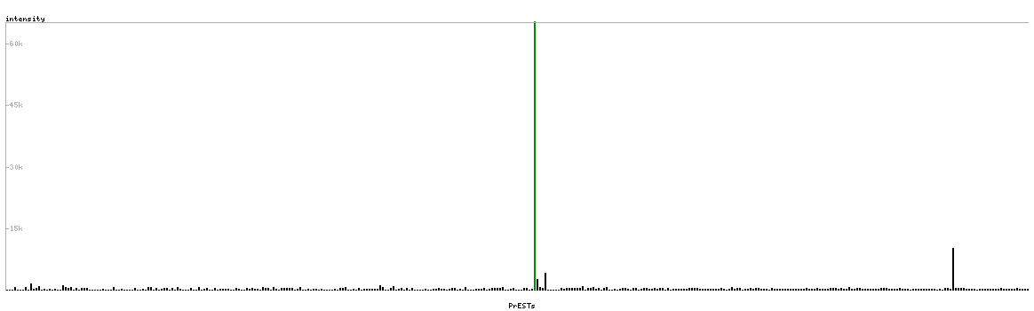 At the top of the view, the position of the antigen (identified by the corresponding HPA identifier) is shown as a green bar. A yellow triangle on the bar indicates a <100% sequence identity to the protein target.